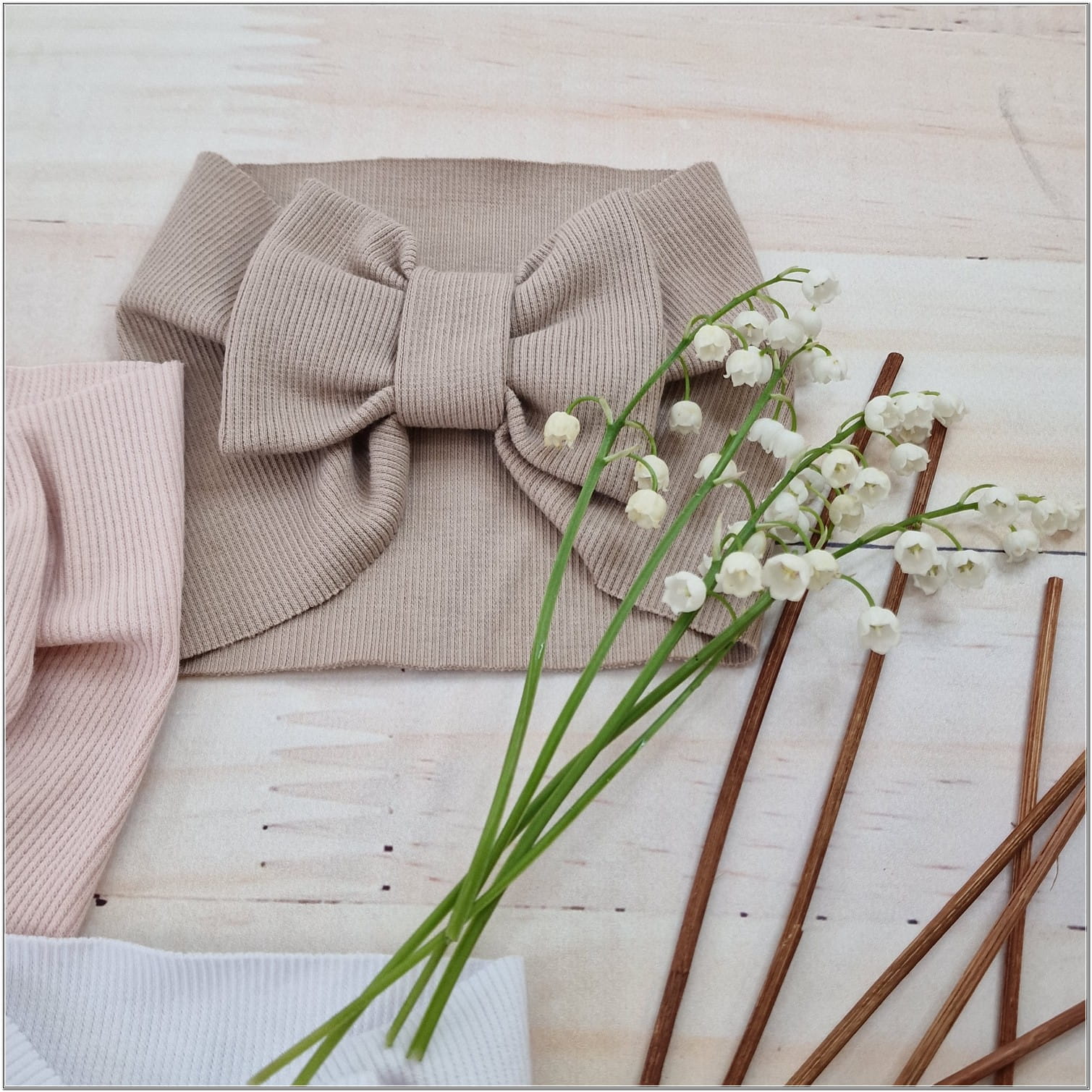 Szeroka opaska prążkowana kokarda rozmiar 0-6miesięcy 6-12miesięcy 1-3lat misiowy brąz