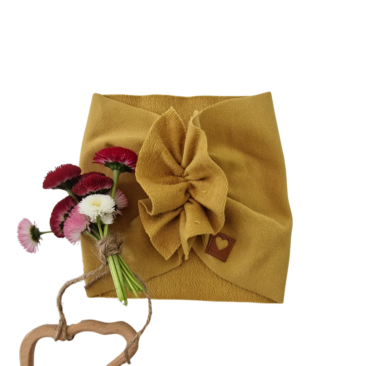 Szeroka opaska turban rozmiar 0-6miesięcy 6-12miesięcy 1-3lat musztardowa
