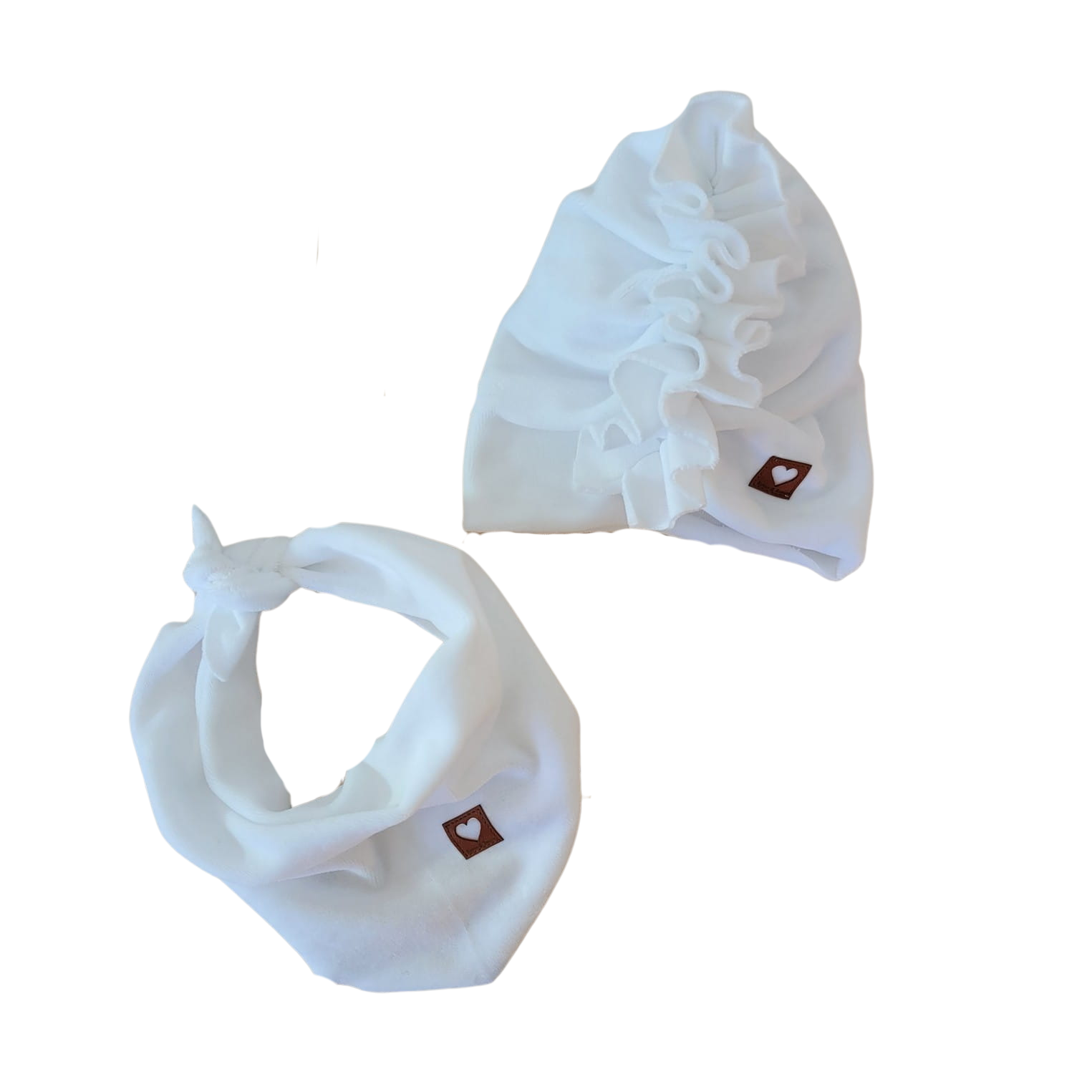 Welurowa Czapka turban + chustka rozmiar 0-6miesięcy 6-12miesięcy 1-3lat biała