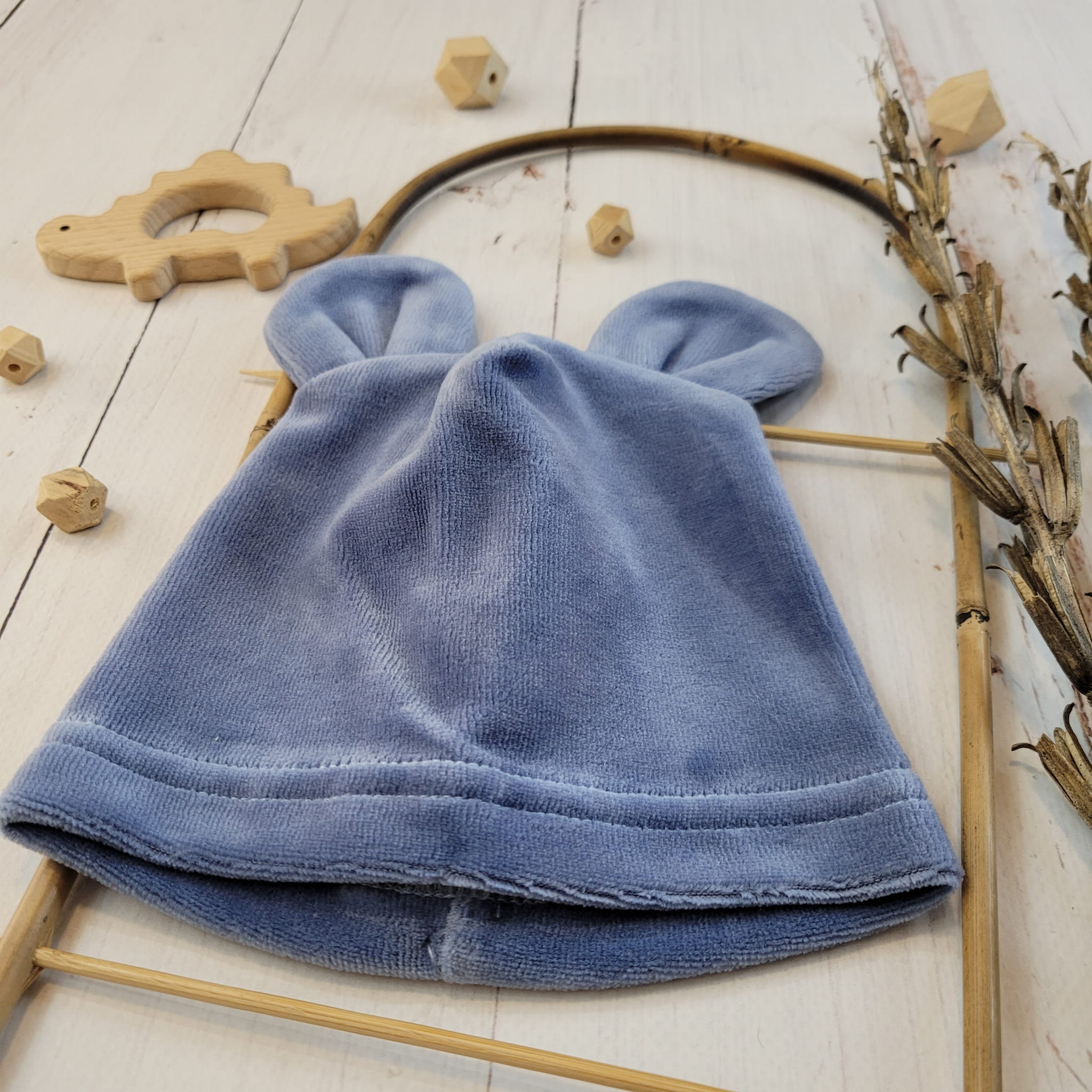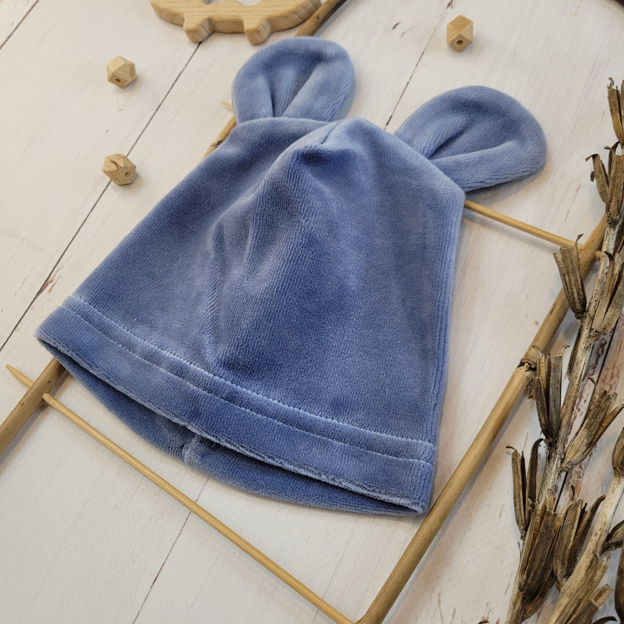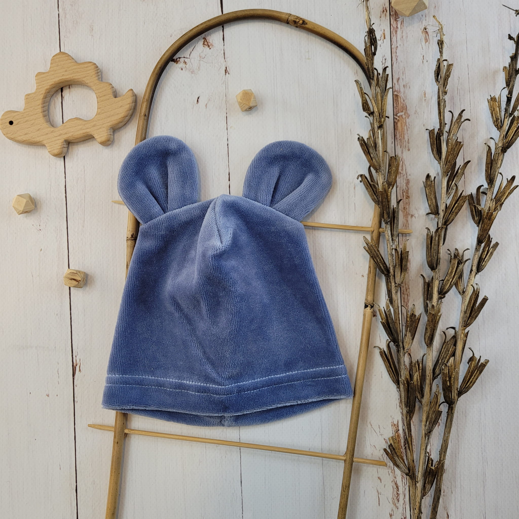 Welurowa czapka niemowlęca z uszkami 56-86 jeans