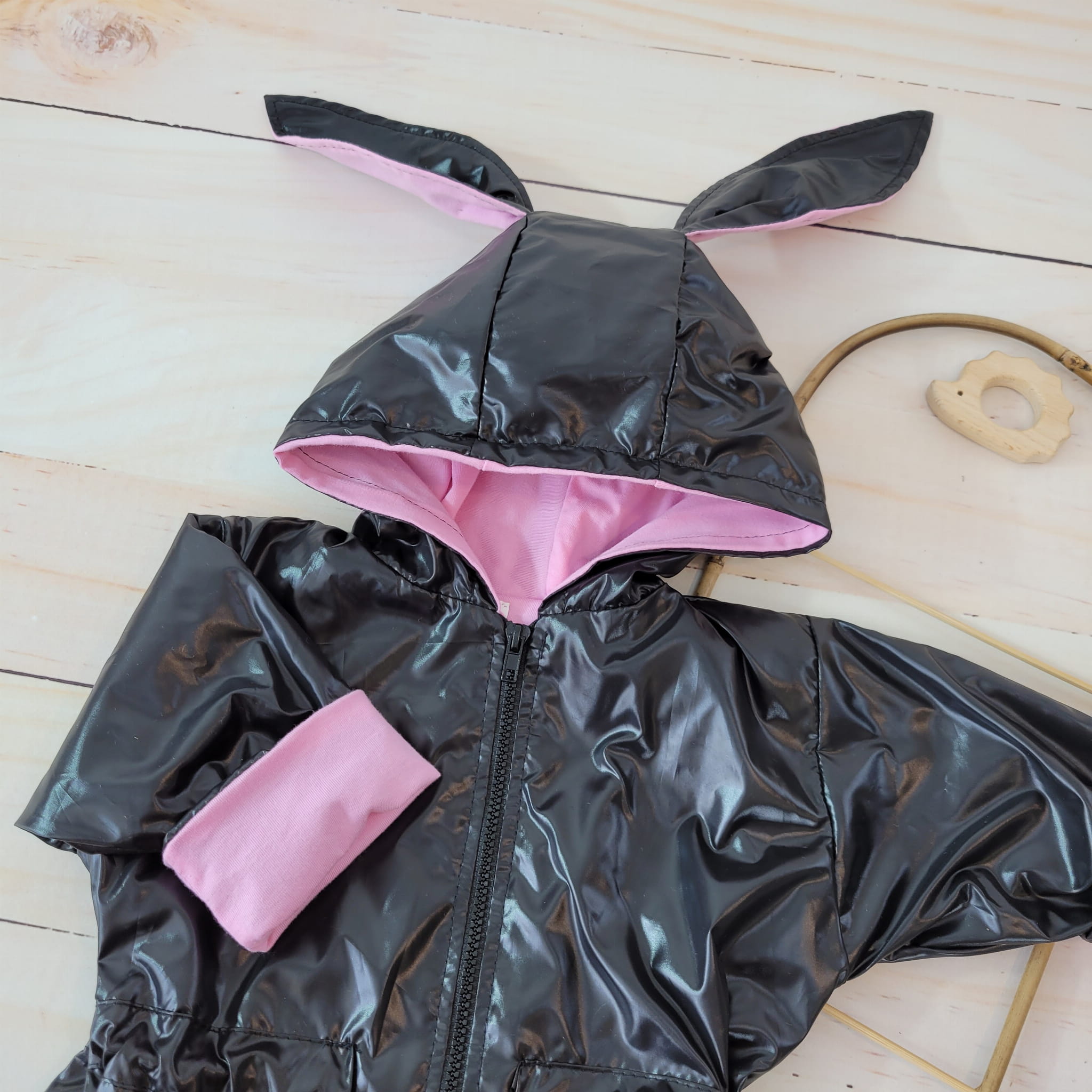 Wiosenna cienka kurtka parka 56-86 czarno-różowa