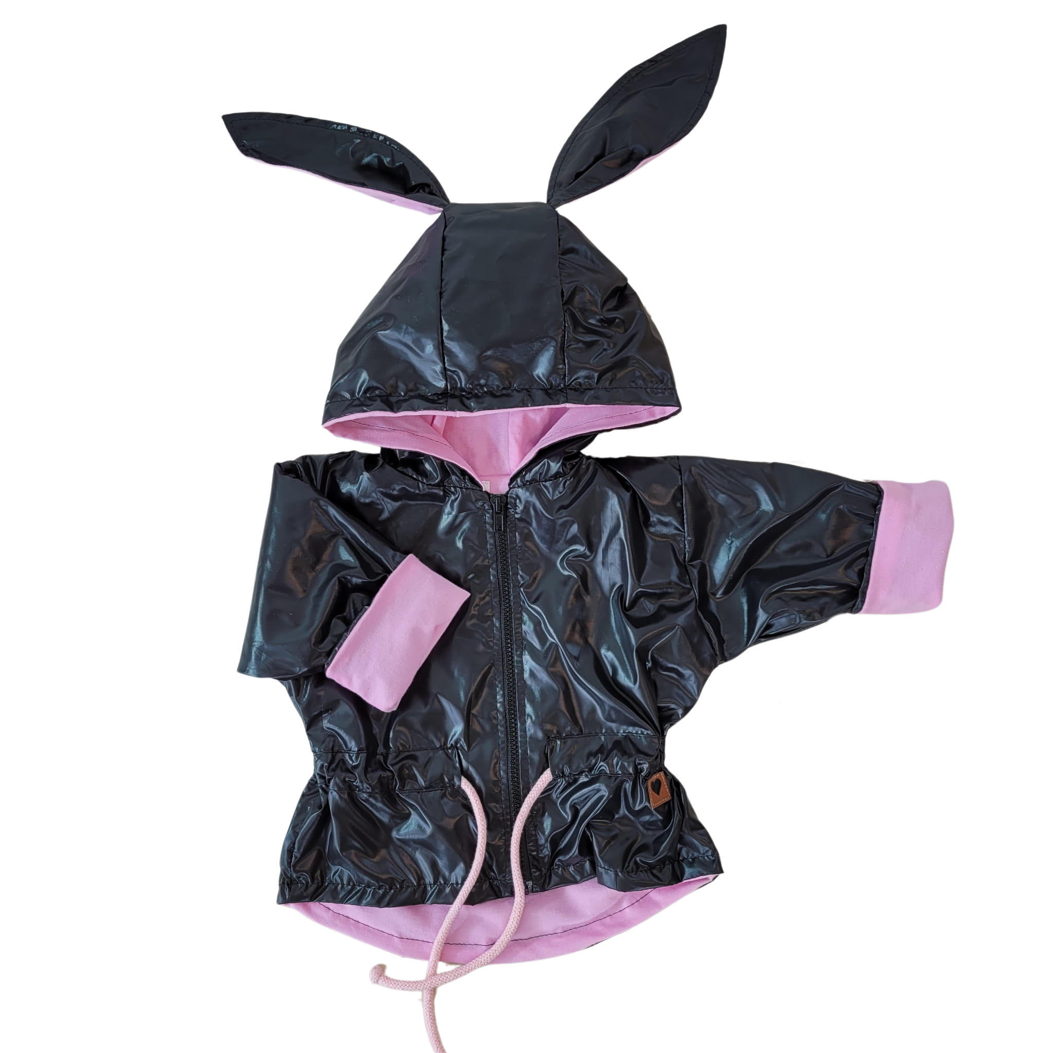Kurteczka jest 2-warstwowa. Z zewnątrz materiał ortalion, od spodu bawełniana podszewka.