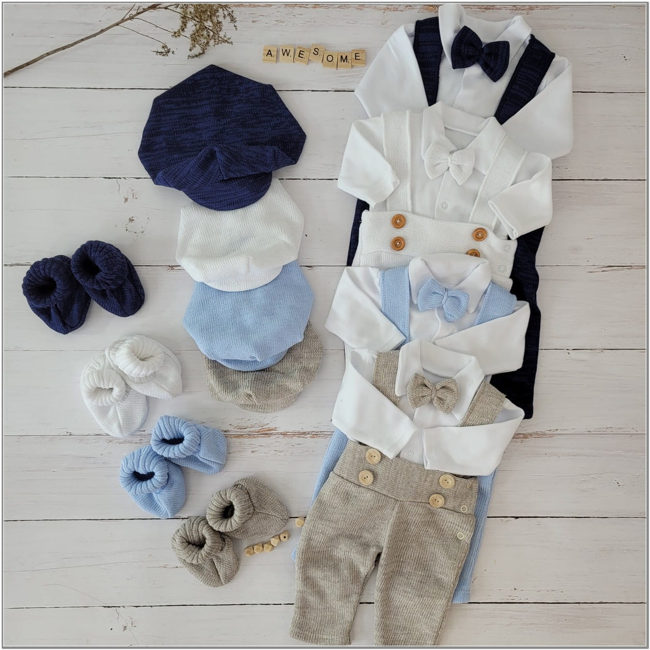 Unikalny zestaw na chrzest, wyjątkowy garniturek, ubranko do chrztu