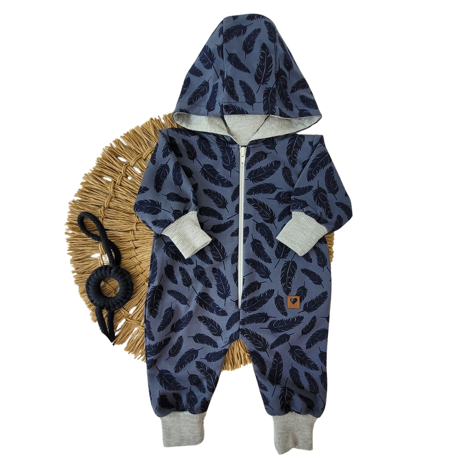 Kombinezon dresowy jednowarstwowy granatowo-szary z motywem piórka.