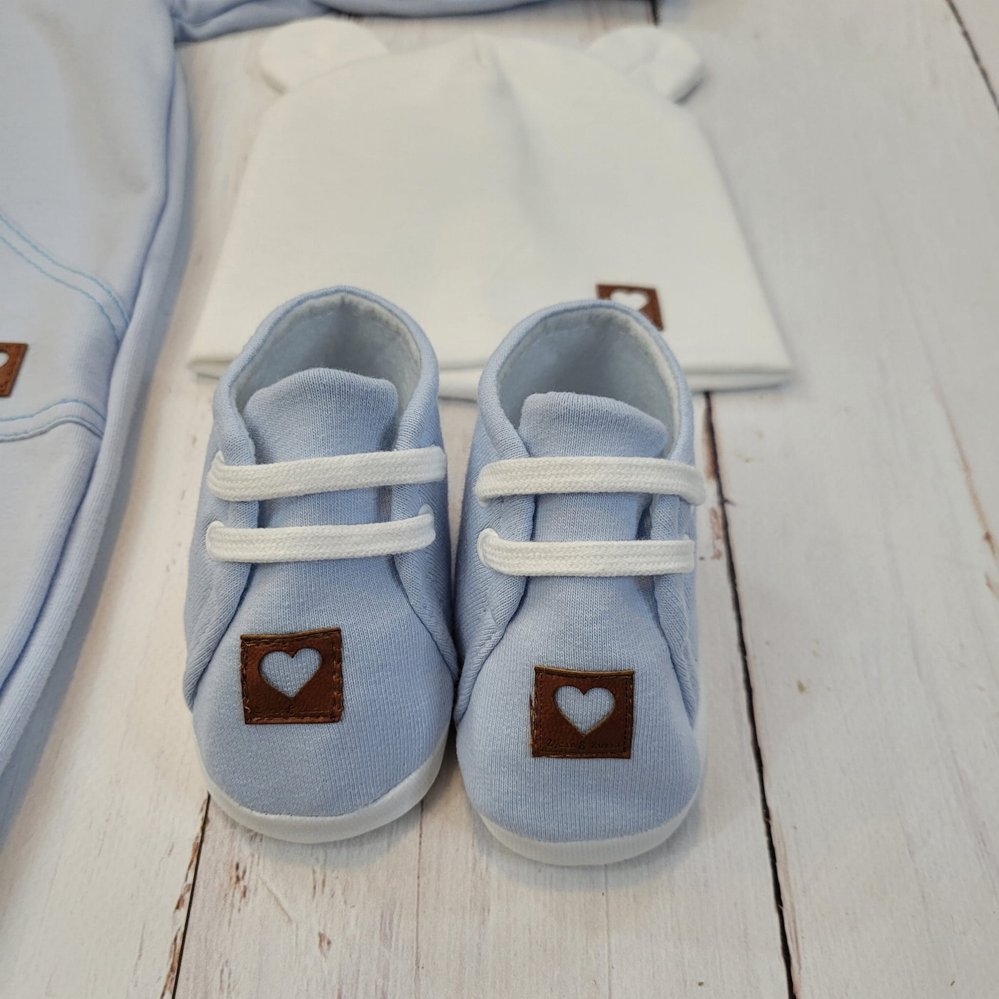 Zestaw kombinezon z kapturem pajac + czapka + buty 56-86 błękitny