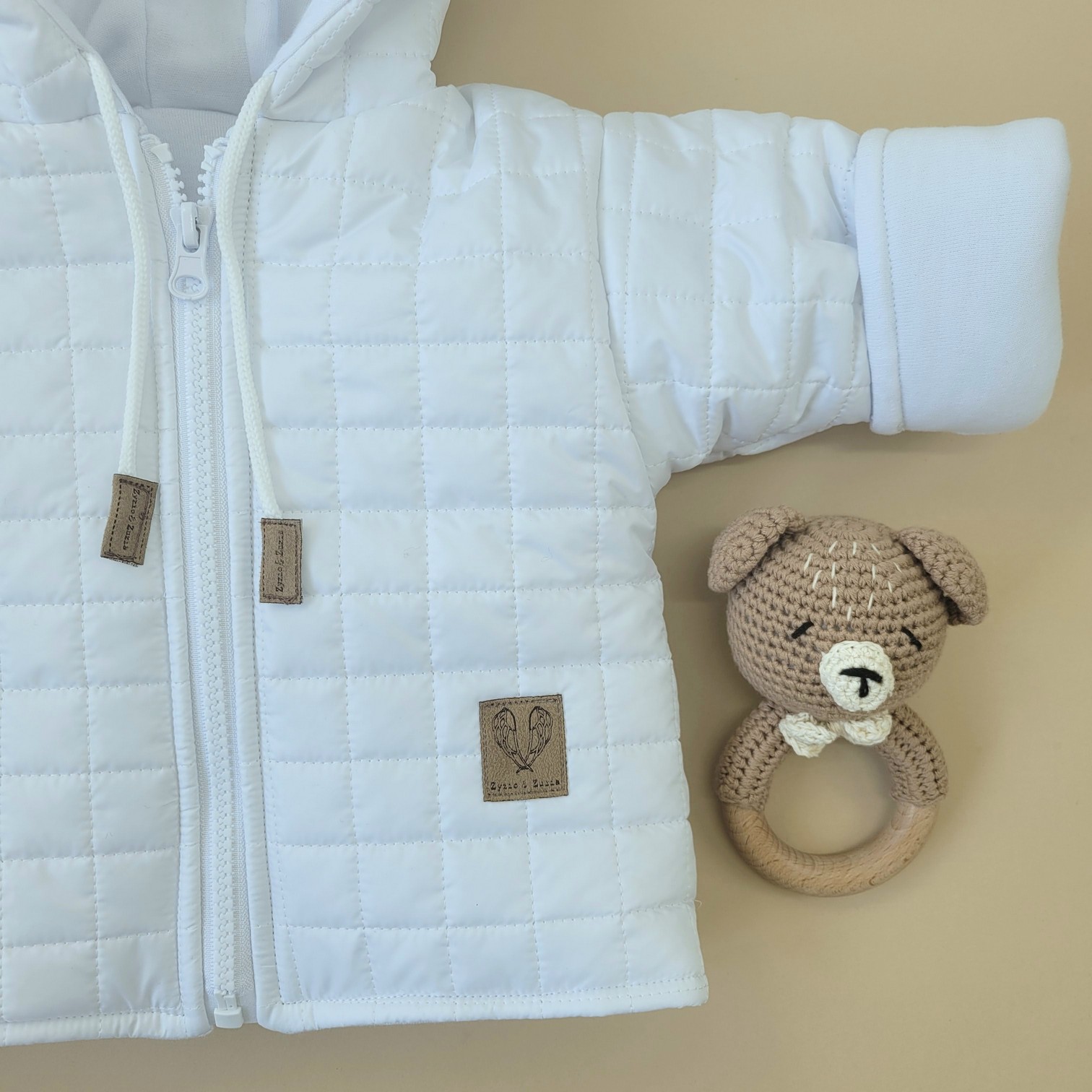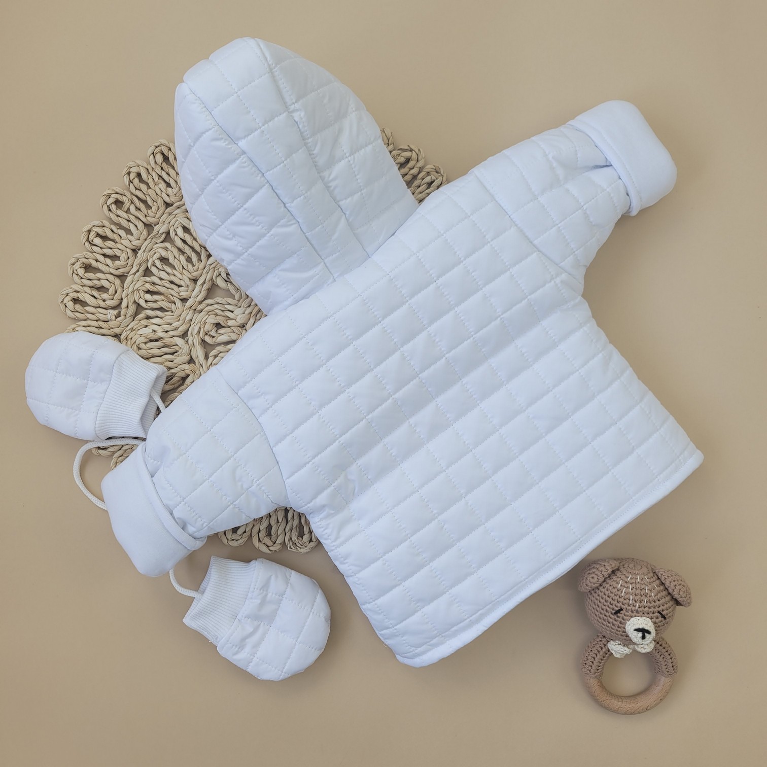 Zimowa ocieplana kurtka pikowana+rękawiczki 56-86 biała