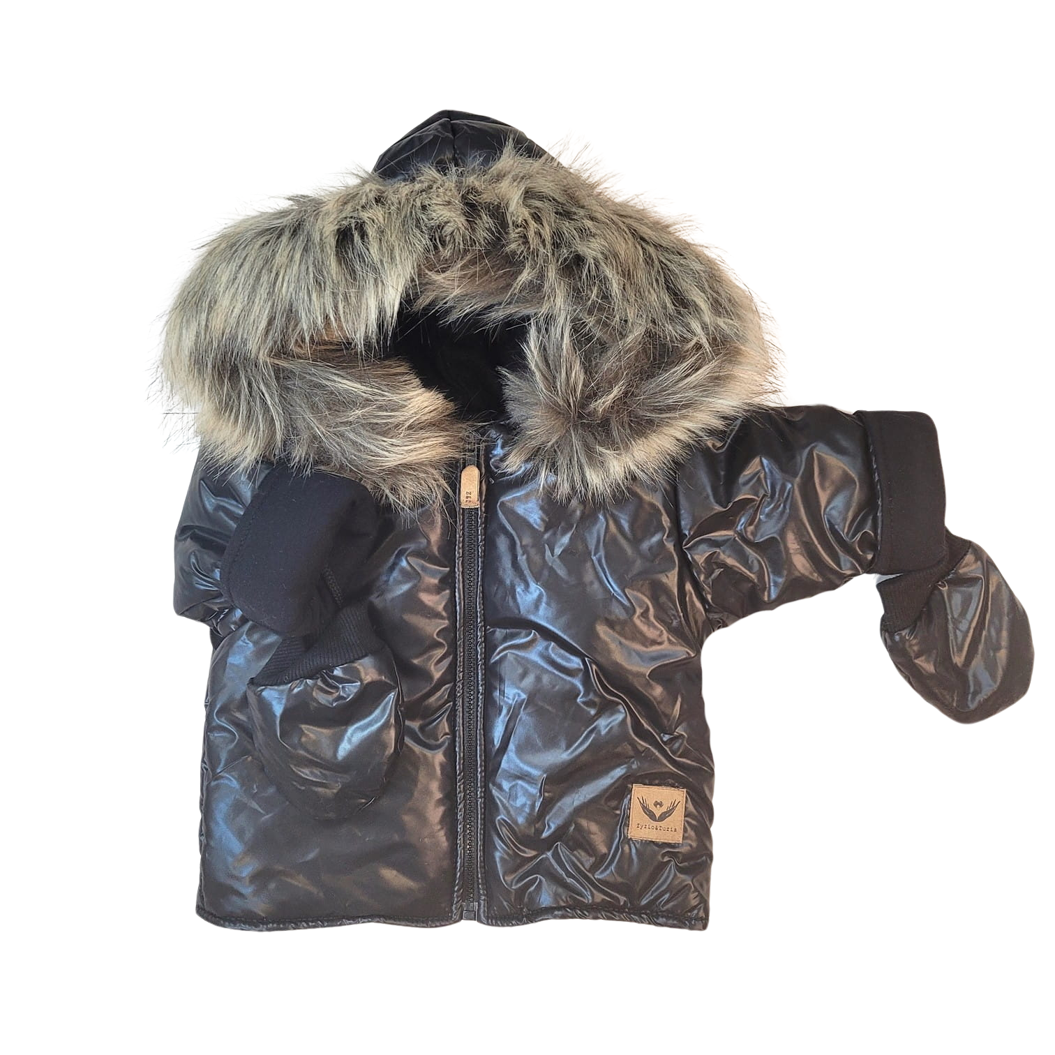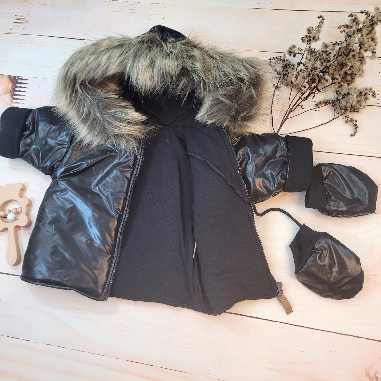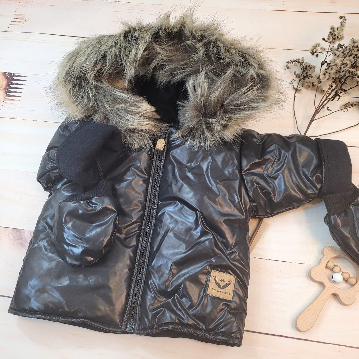 Zimowa ocieplana kurtka z futerkiem+rękawiczki 56-86 czarna